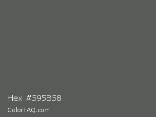 Hex #595b58 Color is a normal green color and the nearest color is Chicago #5d5c58. Hex code #595b58 and RGB value is rgb(89,91,88). In RGB color space, this color is composed of 35% red, 36% green, 35% blue, In CMYK color space, this color is composed of 2% cyan, 0% magenta, 3% yellow , 64% black , In HSL color space, this color has a hue angle of 100° , 2% saturation and 35% lightness.