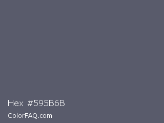 Hex #595b6b Color is a normal blue color and the nearest color is Mid Gray #5f5f6e. Hex code #595b6b and RGB value is rgb(89,91,107). In RGB color space, this color is composed of 35% red, 36% green, 42% blue, In CMYK color space, this color is composed of 17% cyan, 15% magenta, 0% yellow , 58% black , In HSL color space, this color has a hue angle of 233° , 9% saturation and 38% lightness.