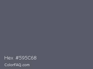 Hex #595c68 Color is a normal blue color and the nearest color is Mid Gray #5f5f6e. Hex code #595c68 and RGB value is rgb(89,92,104). In RGB color space, this color is composed of 35% red, 36% green, 41% blue, In CMYK color space, this color is composed of 14% cyan, 12% magenta, 0% yellow , 59% black , In HSL color space, this color has a hue angle of 228° , 8% saturation and 38% lightness.
