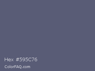 Hex #595c76 Color is a normal blue color and the nearest color is Comet #5c5d75. Hex code #595c76 and RGB value is rgb(89,92,118). In RGB color space, this color is composed of 35% red, 36% green, 46% blue, In CMYK color space, this color is composed of 25% cyan, 22% magenta, 0% yellow , 54% black , In HSL color space, this color has a hue angle of 234° , 14% saturation and 41% lightness.