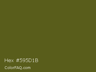 Hex #595d1b Color is a dark yellow color and the nearest color is Saratoga #555b10. Hex code #595d1b and RGB value is rgb(89,93,27). In RGB color space, this color is composed of 35% red, 36% green, 11% blue, In CMYK color space, this color is composed of 4% cyan, 0% magenta, 71% yellow , 64% black , In HSL color space, this color has a hue angle of 64° , 55% saturation and 24% lightness.