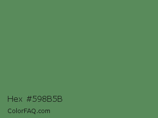Hex #598b5b Color is a normal green color and the nearest color is Glade Green #61845f. Hex code #598b5b and RGB value is rgb(89,139,91). In RGB color space, this color is composed of 35% red, 55% green, 36% blue, In CMYK color space, this color is composed of 36% cyan, 0% magenta, 35% yellow , 45% black , In HSL color space, this color has a hue angle of 122° , 22% saturation and 45% lightness.