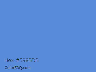 Hex #598bdb Color is a normal blue color and the nearest color is Havelock Blue #5590d9. Hex code #598bdb and RGB value is rgb(89,139,219). In RGB color space, this color is composed of 35% red, 55% green, 86% blue, In CMYK color space, this color is composed of 59% cyan, 37% magenta, 0% yellow , 14% black , In HSL color space, this color has a hue angle of 217° , 64% saturation and 60% lightness.