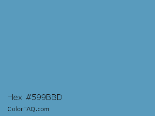 Hex #599bbd Color is a normal blue color and the nearest color is Hippie Blue #589aaf. Hex code #599bbd and RGB value is rgb(89,155,189). In RGB color space, this color is composed of 35% red, 61% green, 74% blue, In CMYK color space, this color is composed of 53% cyan, 18% magenta, 0% yellow , 26% black , In HSL color space, this color has a hue angle of 200° , 43% saturation and 55% lightness.