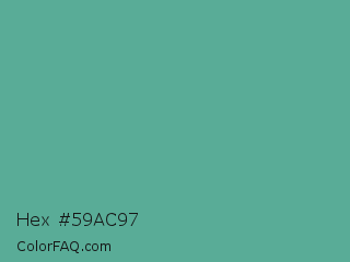 Hex #59ac97 Color is a normal cyan color and the nearest color is Polished Pine #5da493. Hex code #59ac97 and RGB value is rgb(89,172,151). In RGB color space, this color is composed of 35% red, 67% green, 59% blue, In CMYK color space, this color is composed of 48% cyan, 0% magenta, 12% yellow , 33% black , In HSL color space, this color has a hue angle of 165° , 33% saturation and 51% lightness.