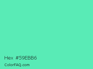 Hex #59ebb6 Color is a light green color and the nearest color is Medium Aquamarine #66ddaa. Hex code #59ebb6 and RGB value is rgb(89,235,182). In RGB color space, this color is composed of 35% red, 92% green, 71% blue, In CMYK color space, this color is composed of 62% cyan, 0% magenta, 23% yellow , 8% black , In HSL color space, this color has a hue angle of 158° , 78% saturation and 64% lightness.