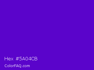 Hex #5a04cb Color is a normal violet color and the nearest color is Interdimensional Blue #360ccc. Hex code #5a04cb and RGB value is rgb(90,4,203). In RGB color space, this color is composed of 35% red, 2% green, 80% blue, In CMYK color space, this color is composed of 56% cyan, 98% magenta, 0% yellow , 20% black , In HSL color space, this color has a hue angle of 266° , 96% saturation and 41% lightness.