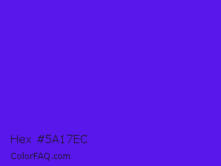 Hex #5a17ec Color is a normal indigo color and the nearest color is Han Purple #5218fa. Hex code #5a17ec and RGB value is rgb(90,23,236). In RGB color space, this color is composed of 35% red, 9% green, 93% blue, In CMYK color space, this color is composed of 62% cyan, 90% magenta, 0% yellow , 7% black , In HSL color space, this color has a hue angle of 259° , 85% saturation and 51% lightness.