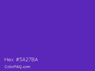 Hex #5a27ba Color is a normal violet color and the nearest color is Purple Heart Crayola #652dc1. Hex code #5a27ba and RGB value is rgb(90,39,186). In RGB color space, this color is composed of 35% red, 15% green, 73% blue, In CMYK color space, this color is composed of 52% cyan, 79% magenta, 0% yellow , 27% black , In HSL color space, this color has a hue angle of 261° , 65% saturation and 44% lightness.