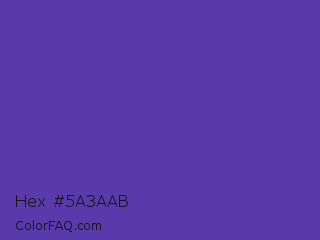 Hex #5a3aab Color is a normal indigo color and the nearest color is Plump Purple #5946b2. Hex code #5a3aab and RGB value is rgb(90,58,171). In RGB color space, this color is composed of 35% red, 23% green, 67% blue, In CMYK color space, this color is composed of 47% cyan, 66% magenta, 0% yellow , 33% black , In HSL color space, this color has a hue angle of 257° , 49% saturation and 45% lightness.