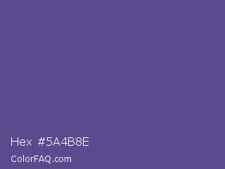 Hex #5a4b8e Color is a normal indigo color and the nearest color is Victoria #534491. Hex code #5a4b8e and RGB value is rgb(90,75,142). In RGB color space, this color is composed of 35% red, 29% green, 56% blue, In CMYK color space, this color is composed of 37% cyan, 47% magenta, 0% yellow , 44% black , In HSL color space, this color has a hue angle of 253° , 31% saturation and 43% lightness.