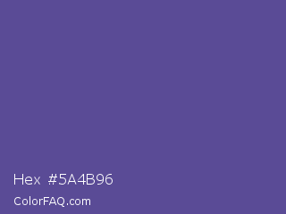 Hex #5a4b96 Color is a normal indigo color and the nearest color is Butterfly Bush #624e9a. Hex code #5a4b96 and RGB value is rgb(90,75,150). In RGB color space, this color is composed of 35% red, 29% green, 59% blue, In CMYK color space, this color is composed of 40% cyan, 50% magenta, 0% yellow , 41% black , In HSL color space, this color has a hue angle of 252° , 33% saturation and 44% lightness.