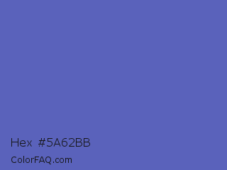 Hex #5a62bb Color is a normal blue color and the nearest color is Blue Violet #6456b7. Hex code #5a62bb and RGB value is rgb(90,98,187). In RGB color space, this color is composed of 35% red, 38% green, 73% blue, In CMYK color space, this color is composed of 52% cyan, 48% magenta, 0% yellow , 27% black , In HSL color space, this color has a hue angle of 235° , 42% saturation and 54% lightness.