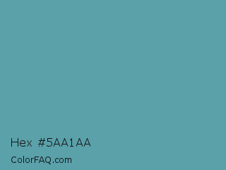 Hex #5aa1aa Color is a normal cyan color and the nearest color is Hippie Blue #589aaf. Hex code #5aa1aa and RGB value is rgb(90,161,170). In RGB color space, this color is composed of 35% red, 63% green, 67% blue, In CMYK color space, this color is composed of 47% cyan, 5% magenta, 0% yellow , 33% black , In HSL color space, this color has a hue angle of 187° , 32% saturation and 51% lightness.