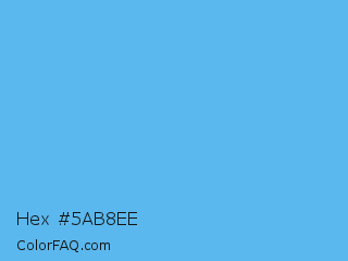 Hex #5ab8ee Color is a light blue color and the nearest color is Blue Jeans #5dadec. Hex code #5ab8ee and RGB value is rgb(90,184,238). In RGB color space, this color is composed of 35% red, 72% green, 93% blue, In CMYK color space, this color is composed of 62% cyan, 23% magenta, 0% yellow , 7% black , In HSL color space, this color has a hue angle of 202° , 81% saturation and 64% lightness.