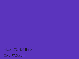 Hex #5b34bd Color is a normal indigo color and the nearest color is Purple Heart Crayola #652dc1. Hex code #5b34bd and RGB value is rgb(91,52,189). In RGB color space, this color is composed of 36% red, 20% green, 74% blue, In CMYK color space, this color is composed of 52% cyan, 72% magenta, 0% yellow , 26% black , In HSL color space, this color has a hue angle of 257° , 57% saturation and 47% lightness.