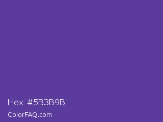 Hex #5b3b9b Color is a normal indigo color and the nearest color is Gigas #523c94. Hex code #5b3b9b and RGB value is rgb(91,59,155). In RGB color space, this color is composed of 36% red, 23% green, 61% blue, In CMYK color space, this color is composed of 41% cyan, 62% magenta, 0% yellow , 39% black , In HSL color space, this color has a hue angle of 260° , 45% saturation and 42% lightness.