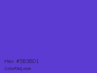 Hex #5b3bd1 Color is a normal indigo color and the nearest color is Iris #5a4fcf. Hex code #5b3bd1 and RGB value is rgb(91,59,209). In RGB color space, this color is composed of 36% red, 23% green, 82% blue, In CMYK color space, this color is composed of 56% cyan, 72% magenta, 0% yellow , 18% black , In HSL color space, this color has a hue angle of 253° , 62% saturation and 53% lightness.