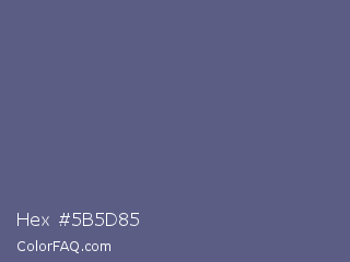 Hex #5b5d85 Color is a normal blue color and the nearest color is Comet #5c5d75. Hex code #5b5d85 and RGB value is rgb(91,93,133). In RGB color space, this color is composed of 36% red, 36% green, 52% blue, In CMYK color space, this color is composed of 32% cyan, 30% magenta, 0% yellow , 48% black , In HSL color space, this color has a hue angle of 237° , 19% saturation and 44% lightness.