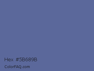 Hex #5b689b Color is a normal blue color and the nearest color is Waikawa Gray #5a6e9c. Hex code #5b689b and RGB value is rgb(91,104,155). In RGB color space, this color is composed of 36% red, 41% green, 61% blue, In CMYK color space, this color is composed of 41% cyan, 33% magenta, 0% yellow , 39% black , In HSL color space, this color has a hue angle of 228° , 26% saturation and 48% lightness.