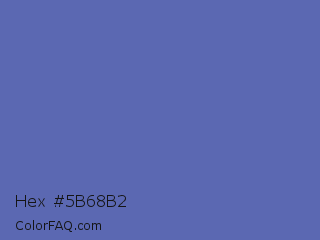 Hex #5b68b2 Color is a normal blue color and the nearest color is Blue Yonder #5072a7. Hex code #5b68b2 and RGB value is rgb(91,104,178). In RGB color space, this color is composed of 36% red, 41% green, 70% blue, In CMYK color space, this color is composed of 49% cyan, 42% magenta, 0% yellow , 30% black , In HSL color space, this color has a hue angle of 231° , 36% saturation and 53% lightness.