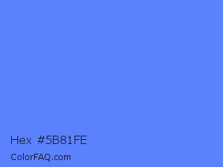 Hex #5b81fe Color is a light blue color and the nearest color is Blueberry #4f86f7. Hex code #5b81fe and RGB value is rgb(91,129,254). In RGB color space, this color is composed of 36% red, 51% green, 100% blue, In CMYK color space, this color is composed of 64% cyan, 49% magenta, 0% yellow , 0% black , In HSL color space, this color has a hue angle of 226° , 99% saturation and 68% lightness.