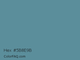 Hex #5b8e9b Color is a normal cyan color and the nearest color is Horizon #5a87a0. Hex code #5b8e9b and RGB value is rgb(91,142,155). In RGB color space, this color is composed of 36% red, 56% green, 61% blue, In CMYK color space, this color is composed of 41% cyan, 8% magenta, 0% yellow , 39% black , In HSL color space, this color has a hue angle of 192° , 26% saturation and 48% lightness.