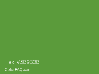 Hex #5b9b3b Color is a normal green color and the nearest color is Apple #4fa83d. Hex code #5b9b3b and RGB value is rgb(91,155,59). In RGB color space, this color is composed of 36% red, 61% green, 23% blue, In CMYK color space, this color is composed of 41% cyan, 0% magenta, 62% yellow , 39% black , In HSL color space, this color has a hue angle of 100° , 45% saturation and 42% lightness.