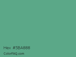 Hex #5ba888 Color is a normal green color and the nearest color is Polished Pine #5da493. Hex code #5ba888 and RGB value is rgb(91,168,136). In RGB color space, this color is composed of 36% red, 66% green, 53% blue, In CMYK color space, this color is composed of 46% cyan, 0% magenta, 19% yellow , 34% black , In HSL color space, this color has a hue angle of 155° , 31% saturation and 51% lightness.