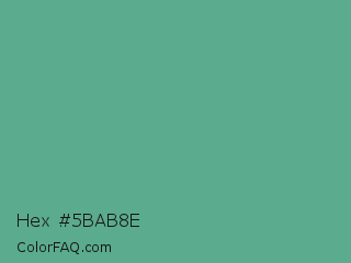 Hex #5bab8e Color is a normal green color and the nearest color is Polished Pine #5da493. Hex code #5bab8e and RGB value is rgb(91,171,142). In RGB color space, this color is composed of 36% red, 67% green, 56% blue, In CMYK color space, this color is composed of 47% cyan, 0% magenta, 17% yellow , 33% black , In HSL color space, this color has a hue angle of 158° , 32% saturation and 51% lightness.