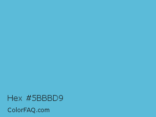 Hex #5bbbd9 Color is a normal blue color and the nearest color is Viking #64ccdb. Hex code #5bbbd9 and RGB value is rgb(91,187,217). In RGB color space, this color is composed of 36% red, 73% green, 85% blue, In CMYK color space, this color is composed of 58% cyan, 14% magenta, 0% yellow , 15% black , In HSL color space, this color has a hue angle of 194° , 62% saturation and 60% lightness.