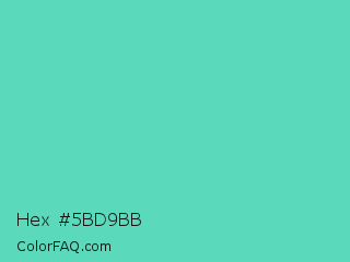Hex #5bd9bb Color is a normal cyan color and the nearest color is Medium Aquamarine #66ddaa. Hex code #5bd9bb and RGB value is rgb(91,217,187). In RGB color space, this color is composed of 36% red, 85% green, 73% blue, In CMYK color space, this color is composed of 58% cyan, 0% magenta, 14% yellow , 15% black , In HSL color space, this color has a hue angle of 166° , 62% saturation and 60% lightness.