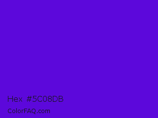 Hex #5c08db Color is a normal violet color and the nearest color is Han Purple #5218fa. Hex code #5c08db and RGB value is rgb(92,8,219). In RGB color space, this color is composed of 36% red, 3% green, 86% blue, In CMYK color space, this color is composed of 58% cyan, 96% magenta, 0% yellow , 14% black , In HSL color space, this color has a hue angle of 264° , 93% saturation and 45% lightness.