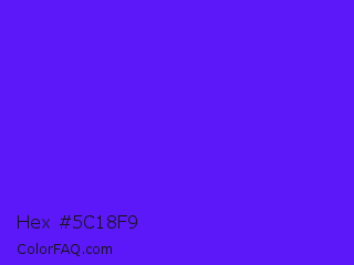 Hex #5c18f9 Color is a normal indigo color and the nearest color is Han Purple #5218fa. Hex code #5c18f9 and RGB value is rgb(92,24,249). In RGB color space, this color is composed of 36% red, 9% green, 98% blue, In CMYK color space, this color is composed of 63% cyan, 90% magenta, 0% yellow , 2% black , In HSL color space, this color has a hue angle of 258° , 95% saturation and 54% lightness.