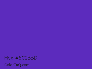 Hex #5c2bbd Color is a normal indigo color and the nearest color is Purple Heart Crayola #652dc1. Hex code #5c2bbd and RGB value is rgb(92,43,189). In RGB color space, this color is composed of 36% red, 17% green, 74% blue, In CMYK color space, this color is composed of 51% cyan, 77% magenta, 0% yellow , 26% black , In HSL color space, this color has a hue angle of 260° , 63% saturation and 45% lightness.