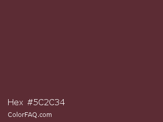 Hex #5c2c34 Color is a dark red color and the nearest color is Buccaneer #622f30. Hex code #5c2c34 and RGB value is rgb(92,44,52). In RGB color space, this color is composed of 36% red, 17% green, 20% blue, In CMYK color space, this color is composed of 0% cyan, 52% magenta, 43% yellow , 64% black , In HSL color space, this color has a hue angle of 350° , 35% saturation and 27% lightness.