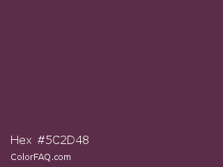 Hex #5c2d48 Color is a dark magenta color and the nearest color is Wine Dregs #673147. Hex code #5c2d48 and RGB value is rgb(92,45,72). In RGB color space, this color is composed of 36% red, 18% green, 28% blue, In CMYK color space, this color is composed of 0% cyan, 51% magenta, 22% yellow , 64% black , In HSL color space, this color has a hue angle of 326° , 34% saturation and 27% lightness.