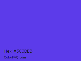 Hex #5c3beb Color is a normal indigo color and the nearest color is Majorelle Blue #6050dc. Hex code #5c3beb and RGB value is rgb(92,59,235). In RGB color space, this color is composed of 36% red, 23% green, 92% blue, In CMYK color space, this color is composed of 61% cyan, 75% magenta, 0% yellow , 8% black , In HSL color space, this color has a hue angle of 251° , 81% saturation and 58% lightness.