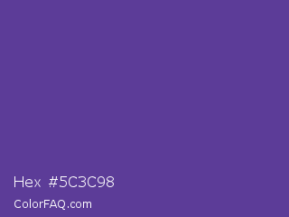 Hex #5c3c98 Color is a normal violet color and the nearest color is Gigas #523c94. Hex code #5c3c98 and RGB value is rgb(92,60,152). In RGB color space, this color is composed of 36% red, 24% green, 60% blue, In CMYK color space, this color is composed of 39% cyan, 61% magenta, 0% yellow , 40% black , In HSL color space, this color has a hue angle of 261° , 43% saturation and 42% lightness.