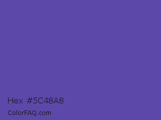 Hex #5c48a8 Color is a normal indigo color and the nearest color is Plump Purple #5946b2. Hex code #5c48a8 and RGB value is rgb(92,72,168). In RGB color space, this color is composed of 36% red, 28% green, 66% blue, In CMYK color space, this color is composed of 45% cyan, 57% magenta, 0% yellow , 34% black , In HSL color space, this color has a hue angle of 253° , 40% saturation and 47% lightness.