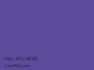 Hex #5c4b9b Color is a normal indigo color and the nearest color is Butterfly Bush #624e9a. Hex code #5c4b9b and RGB value is rgb(92,75,155). In RGB color space, this color is composed of 36% red, 29% green, 61% blue, In CMYK color space, this color is composed of 41% cyan, 52% magenta, 0% yellow , 39% black , In HSL color space, this color has a hue angle of 253° , 35% saturation and 45% lightness.