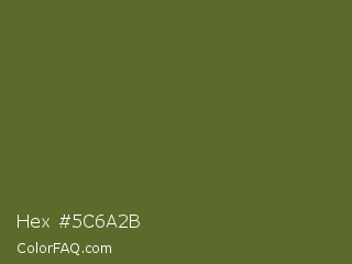 Hex #5c6a2b Color is a dark lime color and the nearest color is Dark Olive Green #556b2f. Hex code #5c6a2b and RGB value is rgb(92,106,43). In RGB color space, this color is composed of 36% red, 42% green, 17% blue, In CMYK color space, this color is composed of 13% cyan, 0% magenta, 59% yellow , 58% black , In HSL color space, this color has a hue angle of 73° , 42% saturation and 29% lightness.