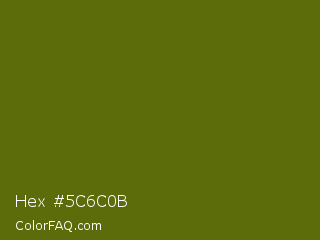 Hex #5c6c0b Color is a dark yellow color and the nearest color is Saratoga #555b10. Hex code #5c6c0b and RGB value is rgb(92,108,11). In RGB color space, this color is composed of 36% red, 42% green, 4% blue, In CMYK color space, this color is composed of 15% cyan, 0% magenta, 90% yellow , 58% black , In HSL color space, this color has a hue angle of 70° , 82% saturation and 23% lightness.