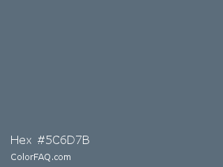 Hex #5c6d7b Color is a normal blue color and the nearest color is Nevada #646e75. Hex code #5c6d7b and RGB value is rgb(92,109,123). In RGB color space, this color is composed of 36% red, 43% green, 48% blue, In CMYK color space, this color is composed of 25% cyan, 11% magenta, 0% yellow , 52% black , In HSL color space, this color has a hue angle of 207° , 14% saturation and 42% lightness.