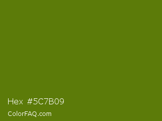 Hex #5c7b09 Color is a dark lime color and the nearest color is Avocado #568203. Hex code #5c7b09 and RGB value is rgb(92,123,9). In RGB color space, this color is composed of 36% red, 48% green, 4% blue, In CMYK color space, this color is composed of 25% cyan, 0% magenta, 93% yellow , 52% black , In HSL color space, this color has a hue angle of 76° , 86% saturation and 26% lightness.