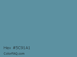 Hex #5c91a1 Color is a normal blue color and the nearest color is Air Force Blue RAF #5d8aa8. Hex code #5c91a1 and RGB value is rgb(92,145,161). In RGB color space, this color is composed of 36% red, 57% green, 63% blue, In CMYK color space, this color is composed of 43% cyan, 10% magenta, 0% yellow , 37% black , In HSL color space, this color has a hue angle of 194° , 27% saturation and 50% lightness.