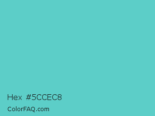 Hex #5ccec8 Color is a normal cyan color and the nearest color is Downy #6fd0c5. Hex code #5ccec8 and RGB value is rgb(92,206,200). In RGB color space, this color is composed of 36% red, 81% green, 78% blue, In CMYK color space, this color is composed of 55% cyan, 0% magenta, 3% yellow , 19% black , In HSL color space, this color has a hue angle of 177° , 54% saturation and 58% lightness.