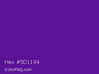 Hex #5d1194 Color is a normal purple color and the nearest color is Purple #660099. Hex code #5d1194 and RGB value is rgb(93,17,148). In RGB color space, this color is composed of 36% red, 7% green, 58% blue, In CMYK color space, this color is composed of 37% cyan, 89% magenta, 0% yellow , 42% black , In HSL color space, this color has a hue angle of 275° , 79% saturation and 32% lightness.