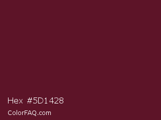 Hex #5d1428 Color is a very dark rose color and the nearest color is Wine Berry #591d35. Hex code #5d1428 and RGB value is rgb(93,20,40). In RGB color space, this color is composed of 36% red, 8% green, 16% blue, In CMYK color space, this color is composed of 0% cyan, 78% magenta, 57% yellow , 64% black , In HSL color space, this color has a hue angle of 344° , 65% saturation and 22% lightness.