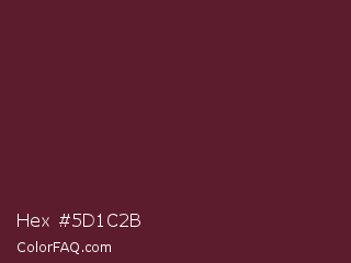 Hex #5d1c2b Color is a dark red color and the nearest color is Wine Berry #591d35. Hex code #5d1c2b and RGB value is rgb(93,28,43). In RGB color space, this color is composed of 36% red, 11% green, 17% blue, In CMYK color space, this color is composed of 0% cyan, 70% magenta, 54% yellow , 64% black , In HSL color space, this color has a hue angle of 346° , 54% saturation and 24% lightness.